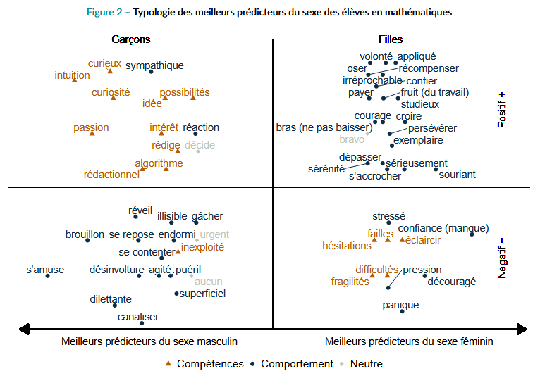 Do French teachers use different vocabulary to describe boys and girls at the same academic level?