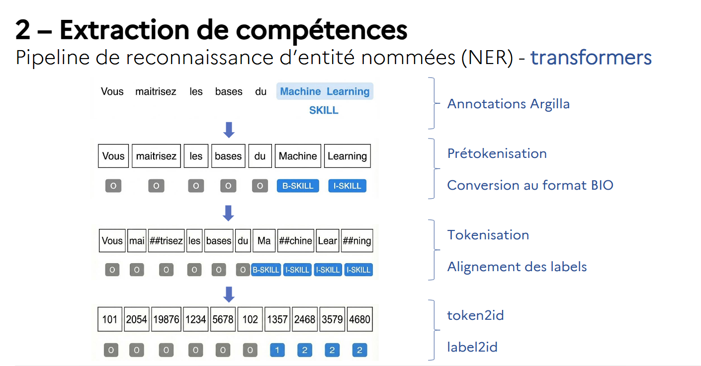 Train model to dectect tokens about digital skills based on human annotation to predict for out of sample tokens