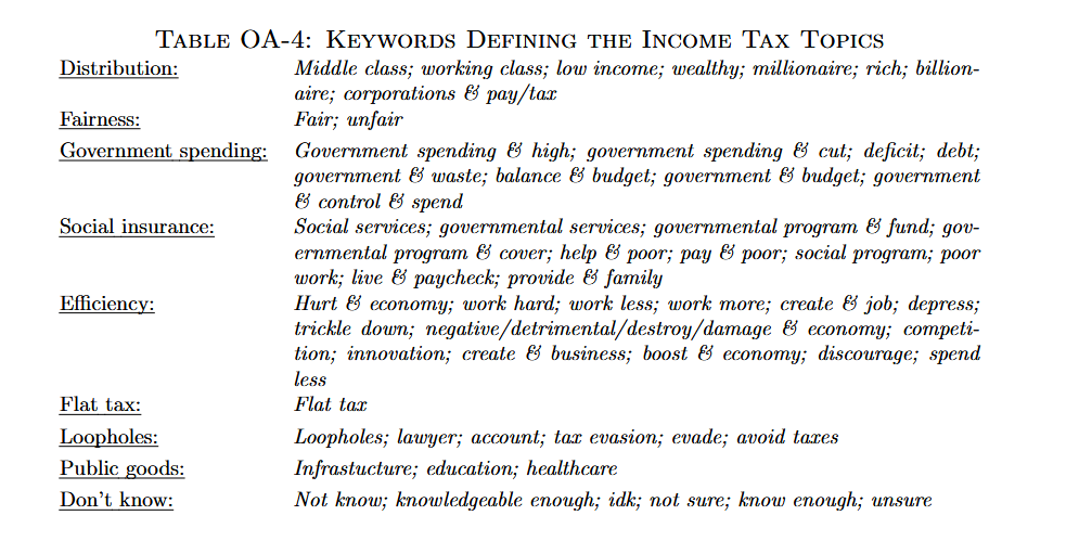 Open-ended survey responses cluster around fairness, government trust, loopholes.
