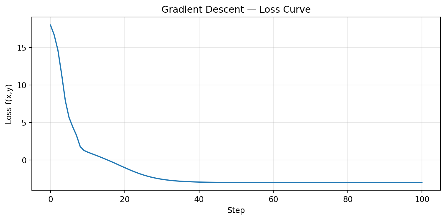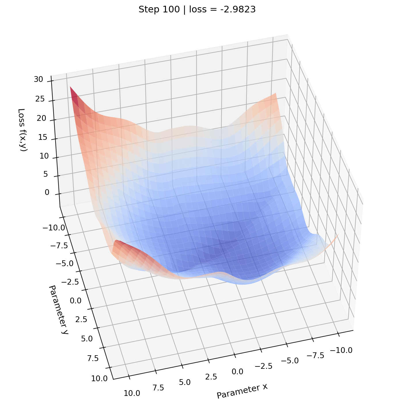 Let’s define a function \(f(x, y)\) - two parameters, x and y - which we are going to minimize, and its gradient df.